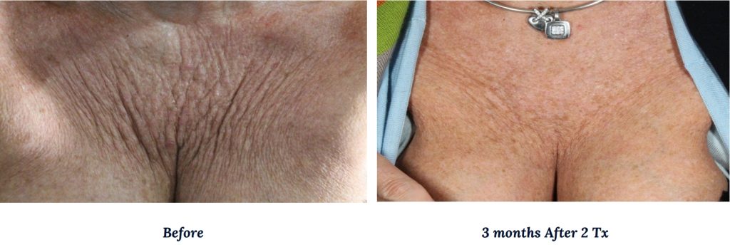 Clients noticing crepey or thinning skin, etched lines, or early laxity on the lower face, neck, and chest who prefer structural support over surface-only refreshers.