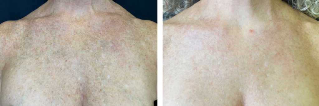 IPL for pigmentation targets excess melanin in sun spots, age spots, freckles, and melasma, breaking it down into smaller particles that the body naturally clears away. The light energy selectively heats pigmented lesions without harming surrounding tissue, leading to gradual fading and a more uniform complexion. Most clients see noticeable improvement after 2–3 sessions, with full results developing over several weeks as pigmented cells slough off and regenerate.