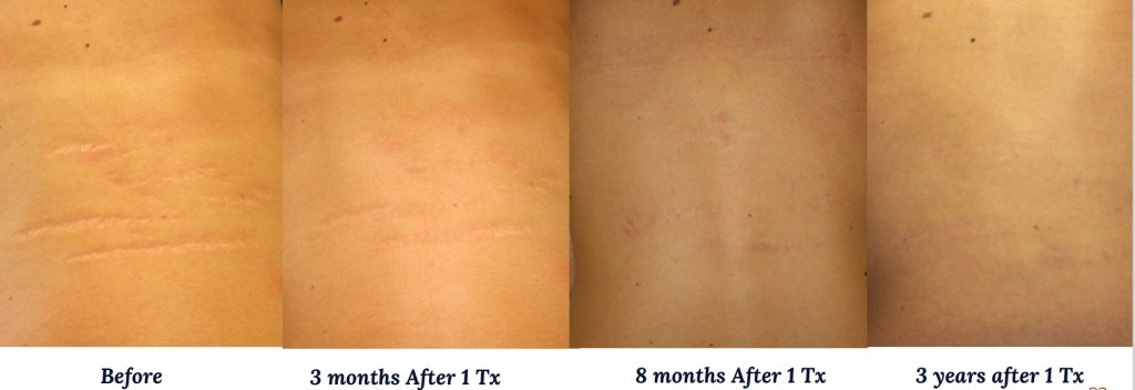 Stretch marks, or striae, form when rapid skin stretching disrupts collagen and elastin networks. Sinclair’s V Series FR targets these areas with focused thermal energy, initiating a controlled injury response that rebuilds structural proteins from the inside out. Over a series of sessions, the treated channels fill in as new collagen forms, visibly reducing width and color contrast of stretch marks on the abdomen, thighs, hips, and breasts.